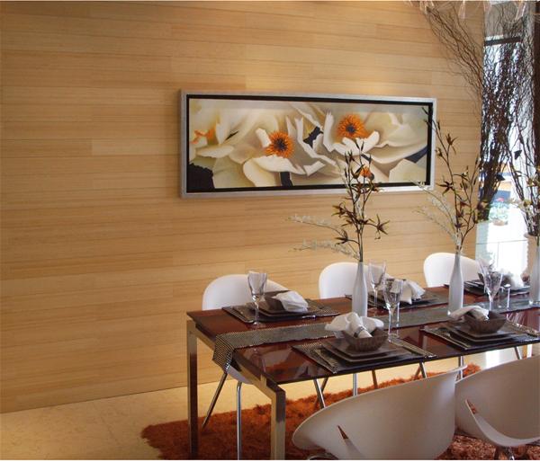 桃花江竹材科技研發(fā)的各類竹制材料廣泛適用于建筑裝飾、商業(yè)空間及家庭裝修。根據(jù)裝飾風(fēng)格、效果及設(shè)計(jì)要求的不同,桃花江可以進(jìn)行特殊產(chǎn)品的定制化,滿足個性化需求。竹裝飾板材相對一般實(shí)木的力學(xué)強(qiáng)度較大,自然機(jī)理表現(xiàn)效果更好,更能體現(xiàn)東方文化元素,是目前裝飾行業(yè)高端項(xiàng)目設(shè)計(jì)中經(jīng)常用到的材料。