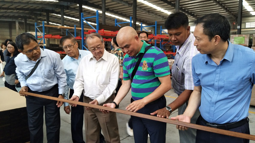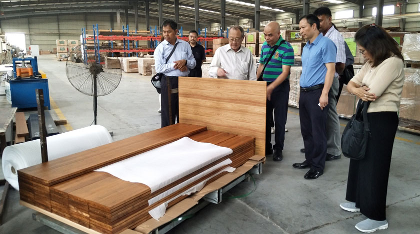 索枚先生一行在桃花江竹材科技的生產車間,詳細了解公司重組竹材的生產、銷售情況,得知我司的高炭防腐竹材的高科技和高性能后,索枚感嘆到“沒想到竹業在你們這里做得非常好,也讓我們學到了很多東西;我們將學到的帶到泰國去發展,推動我們國家竹產業的發展。”