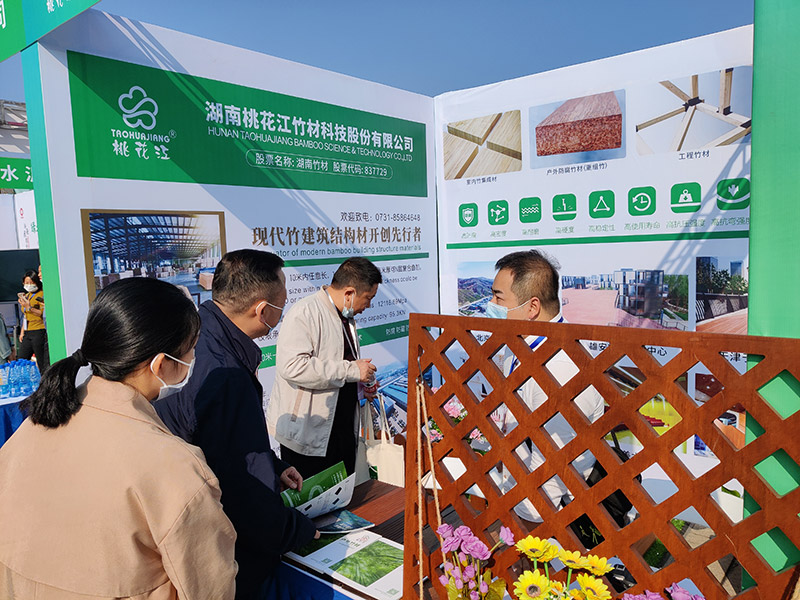 積極響應參與此次活動。領導嘉賓在參觀展覽時,被桃花江竹材的綠色環保竹材產品吸引,紛紛駐足詳細了解,公司現場工作人員進行熱情接待,耐心講解,給現場嘉賓們留下了深刻印象。