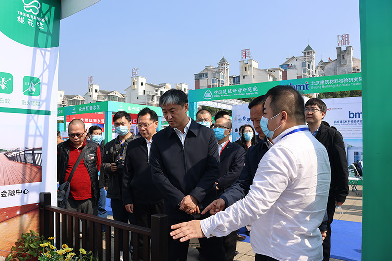 工業和信息化部原材料工業司副司長邢濤,省工信廳廳長雷紹業一行在桃花江竹材展位前認真參觀了解