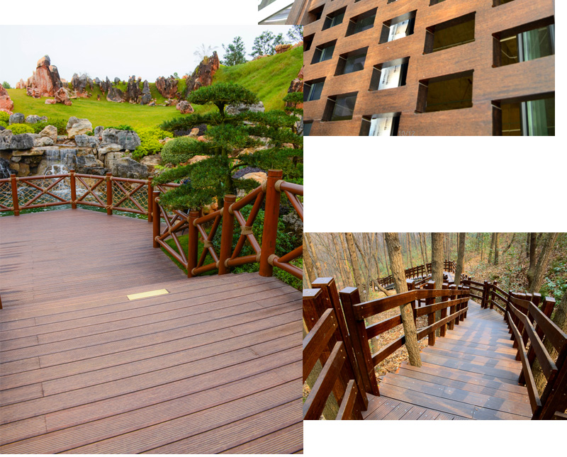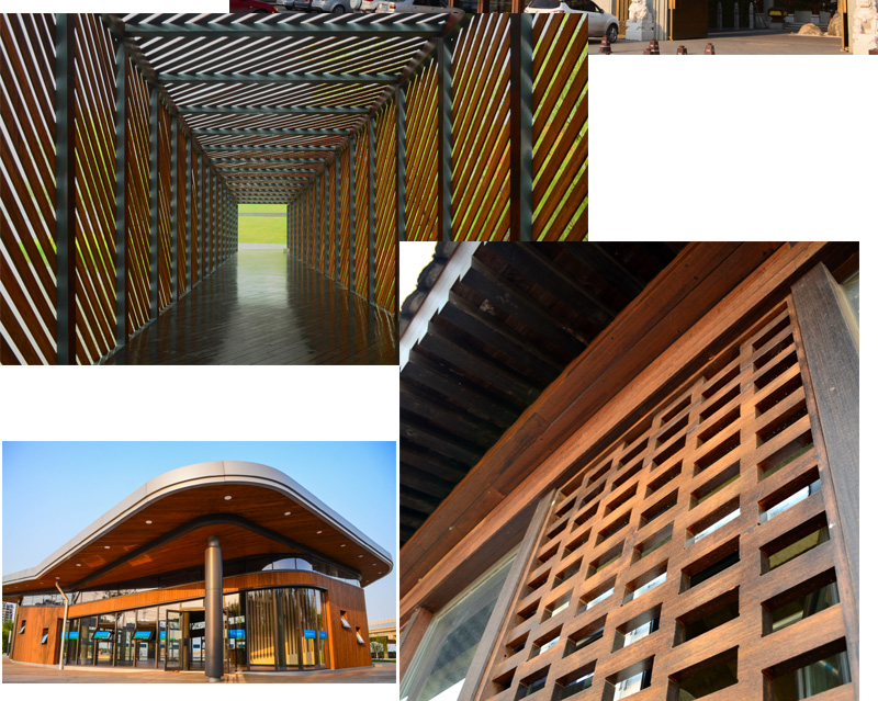 由于竹子的天然特性,其吸濕、吸熱性能高于木材,在穩定性上,竹木材料的收縮和膨脹也比實木材料小,且導熱系數低,所以還有“冬暖夏涼”的特性。紋理自然、色澤典雅,綠色環保,高耐候,耐腐蝕,似木非木,碳化高耐竹木板材可與紫檀亂真,是高檔木材的理想替代品。