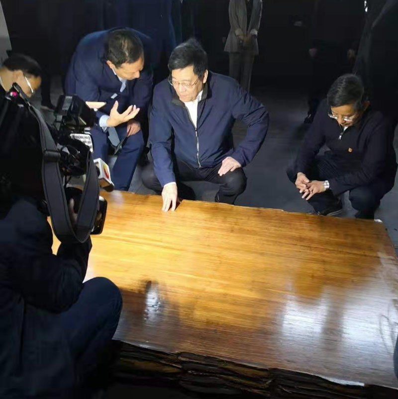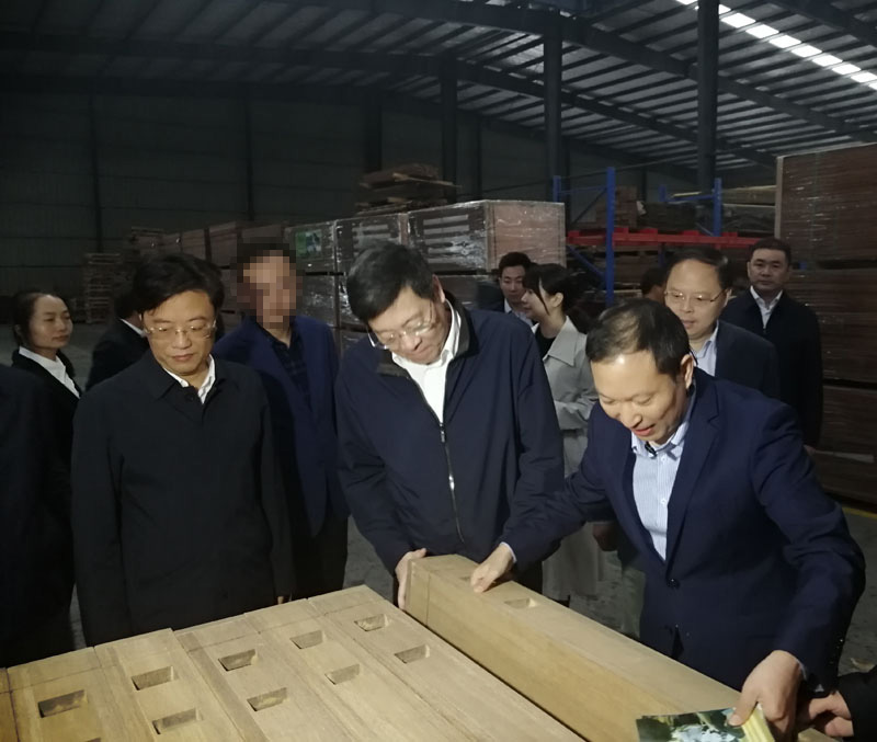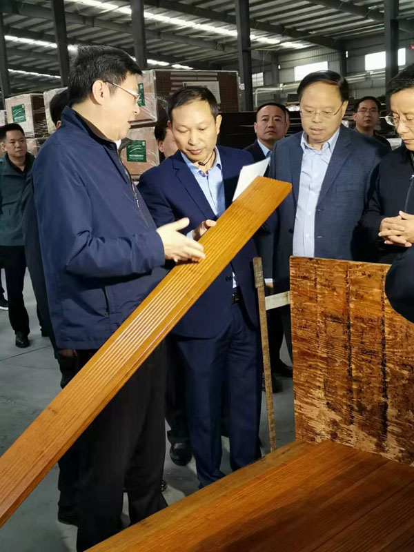 2019年10月15日,湖南省省委書記、省人大常委會主任杜家毫一行蒞臨我司考察調(diào)研,這也是他任職湖南省后第二次造訪桃花江竹材。湖南省委常委、湖南省委秘書長張劍飛,益陽市市委書記瞿海、益陽市市長張值恒等相關部門領導陪同調(diào)研。在公司董事長薛志成的陪同下,杜書記一行深入我司戶外竹材生產(chǎn)車間一線調(diào)研,對我司生產(chǎn)經(jīng)營、人才培養(yǎng)、科技創(chuàng)新和新產(chǎn)品開發(fā)等方面進行了調(diào)研。杜書記仔細端詳公司產(chǎn)品,詳細詢問產(chǎn)品的生產(chǎn)流程,應用領域和銷售情況,他對公司擁有戶外防腐竹材、竹地板、竹墻板等10余項國家授權發(fā)明專利的研發(fā)能力表示贊賞,他說 :"我們需要的就是像桃花江竹材這樣的企業(yè) ,有較強的自主研發(fā)能力,生產(chǎn)的戶外竹材產(chǎn)品,環(huán)保又可持續(xù)發(fā)展,市場前景巨大,發(fā)展竹產(chǎn)業(yè)又能帶動周邊竹農(nóng)致富,政府表示大力支持,前不久出臺的那個湖南農(nóng)業(yè)優(yōu)勢特色千億產(chǎn)業(yè)行動方案就部署了對楠竹產(chǎn)業(yè)的發(fā)展規(guī)劃,希望桃花江竹材作為竹產(chǎn)業(yè)的龍頭企業(yè),能充分發(fā)揮引領帶頭作用,提升竹產(chǎn)業(yè)的科技創(chuàng)新能力,為把竹產(chǎn)業(yè)做大做強貢獻更大的力量。"